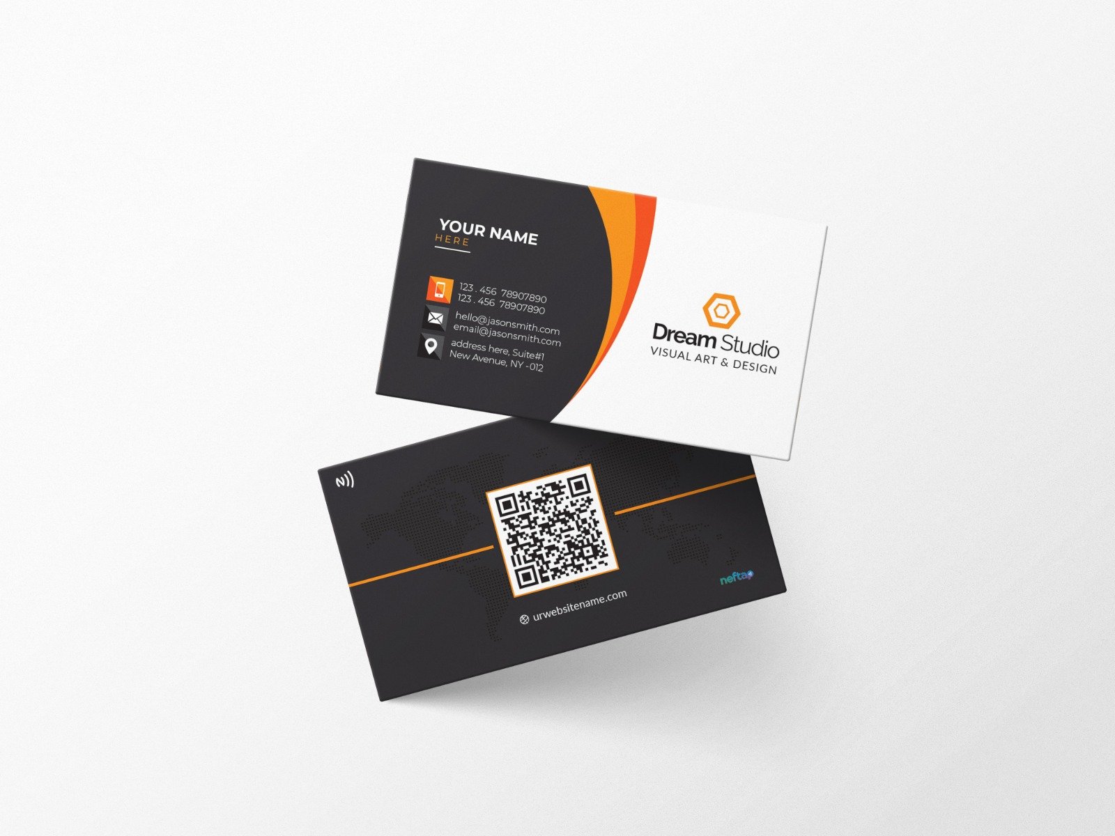 Simple yet striking card with soft orange accents. A great pick for brands, freelancers, and modern professionals who love a clean look.