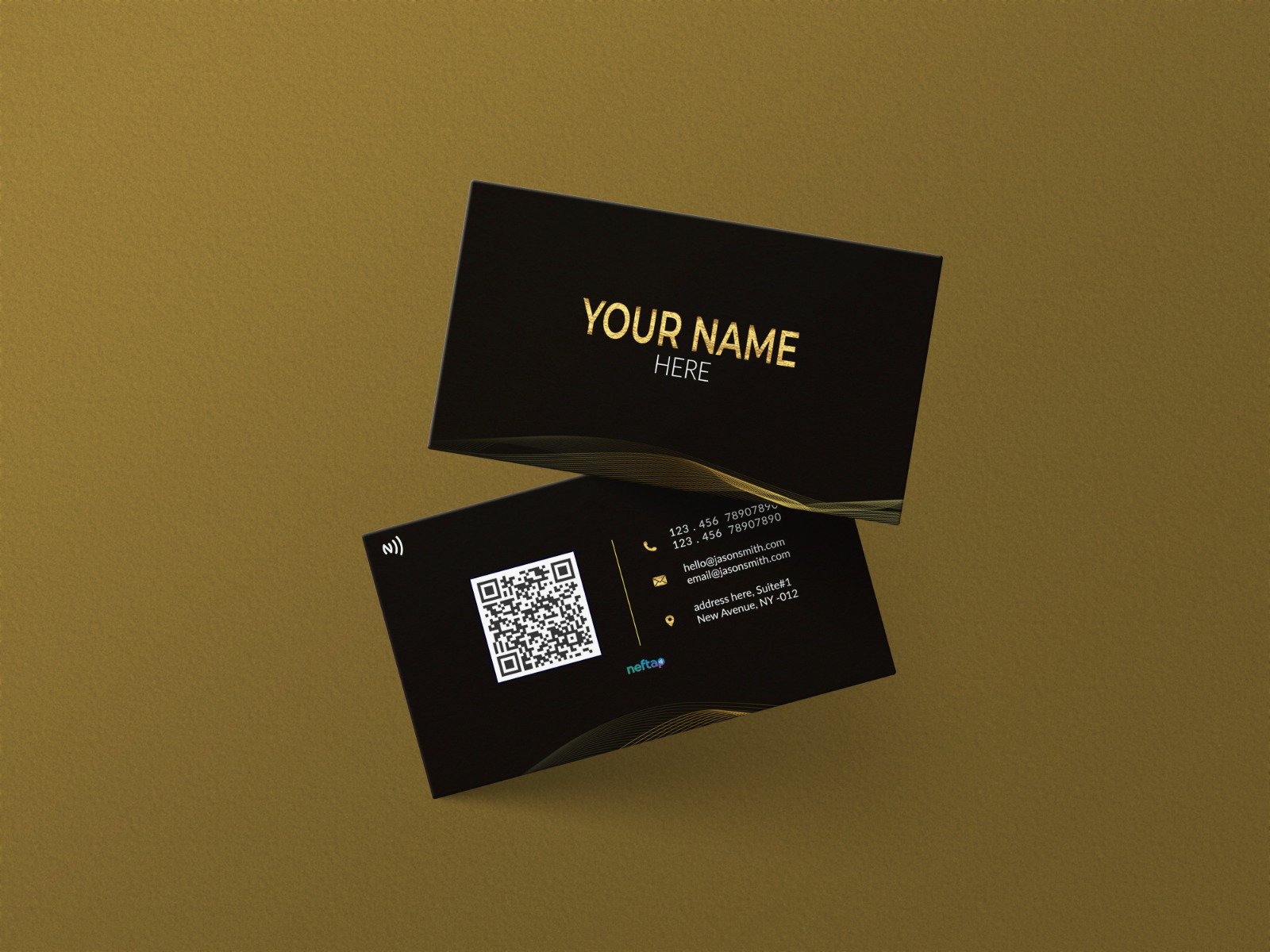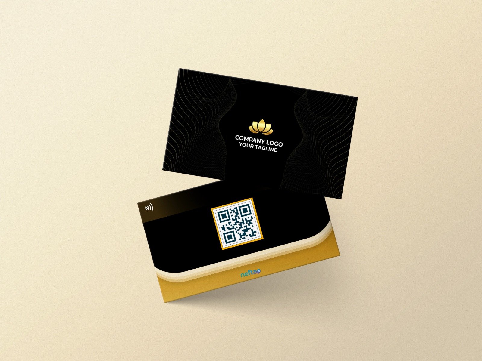 A bold black NFC card with golden highlights—designed to impress and built for instant digital sharing. A premium pick for impactful first impressions.